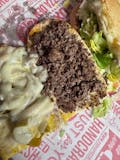 Chopped lettuce topped with zesty taco meat, nacho chips, cheddar cheese, and diced tomatoes. Served with taco sauce.